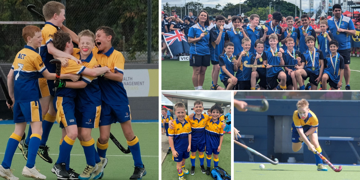 Marist Hockey clubmen Elijah MacKinnon (Full Back), Lucas Thearle (Half Back), and Patrick Coffey (Forward) represented the ACT at the Australian School Sport 12 and Under Hockey Championships in Cairns from 19-23 August, under coach and former Hockeyroo, Olympian and Champions Trophy winner Peta MacKinnon.